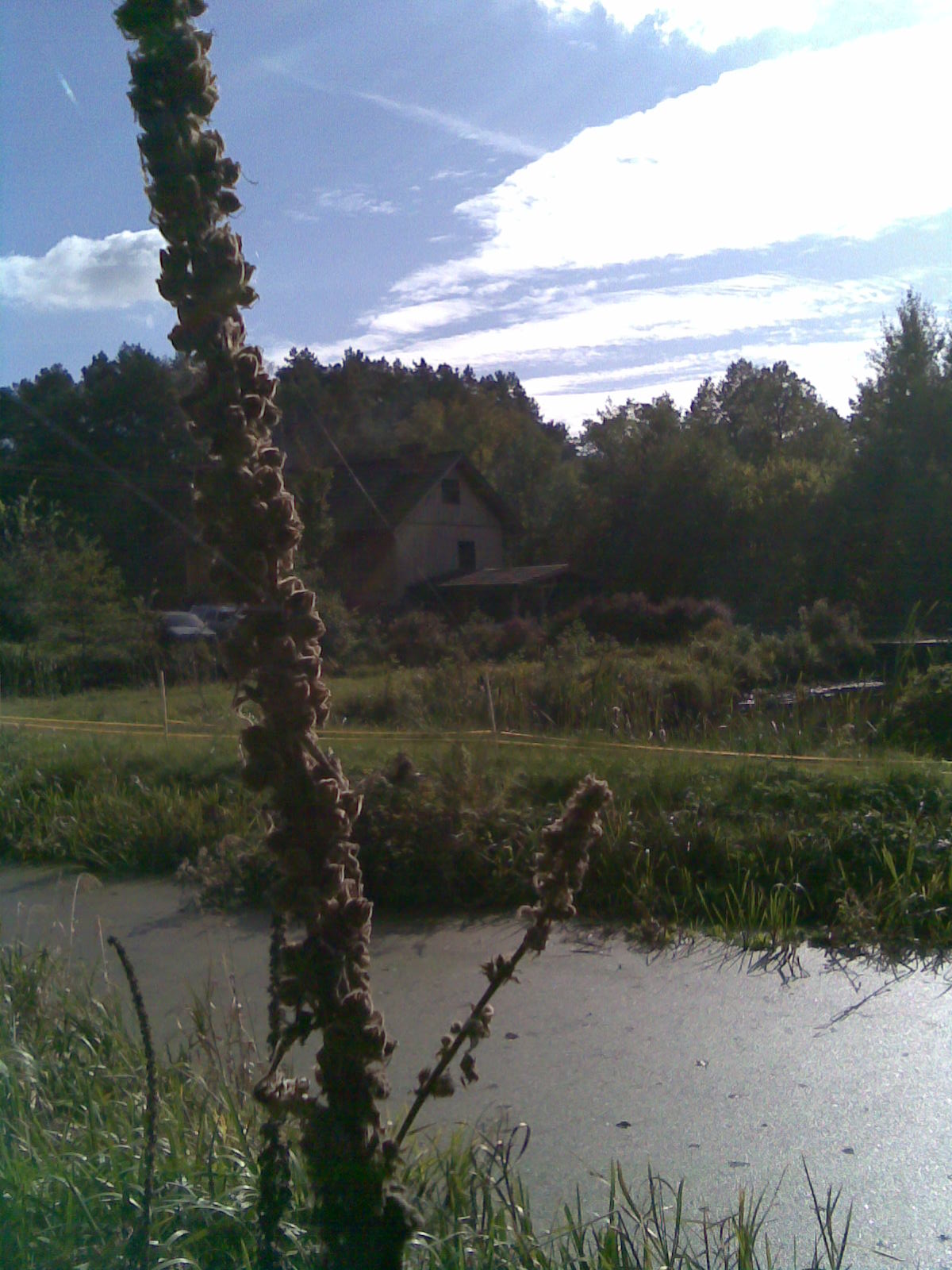 Młyn w całej okazałości. Rzeczka i jeziorko znajdują się na działce należącej do budynku.